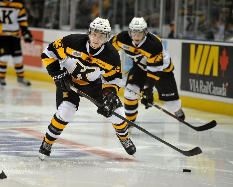 Sam Bennett tracks the play during his OHL days with the Kingston Frontenacs, where his tenacity and two-way game made him one of the league’s most coveted draft prospects. (Photo by Aaron Bell/OHL Images)